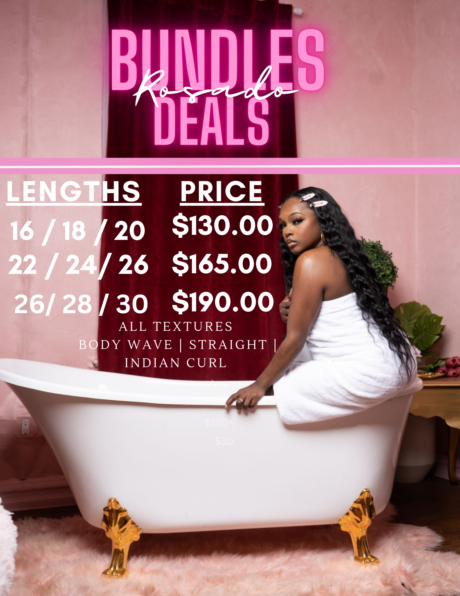 26 / 28 / 30 / Indian Curl - $190.00
